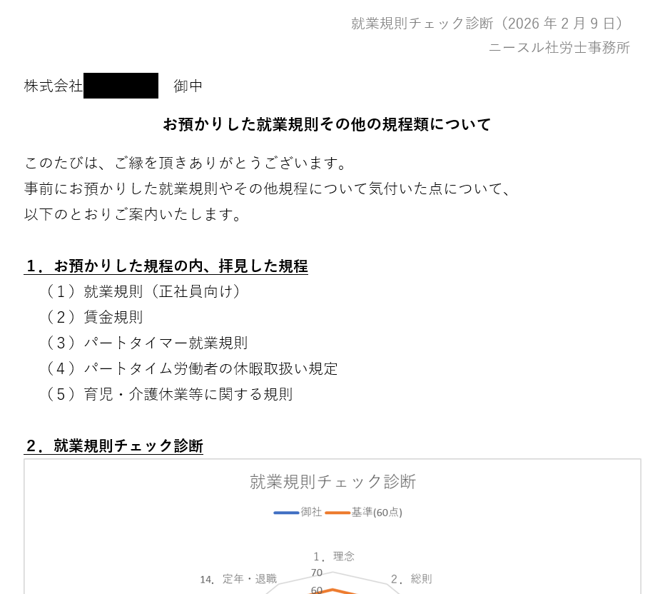 - 就業規則診断のフィードバック(点検結果のご報告)