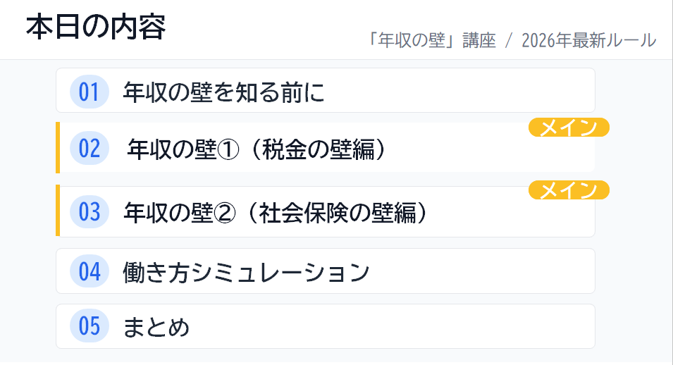 特に、2026年最新版の情報を整理したパートでは、「今の自分はどの壁に関係があるのか?」をみなさんと一緒に確認しました。制度の概要を知ることで、漠然とした不安が「これからの働き方を考えるヒント」に変わっていく様子が印象的でした。